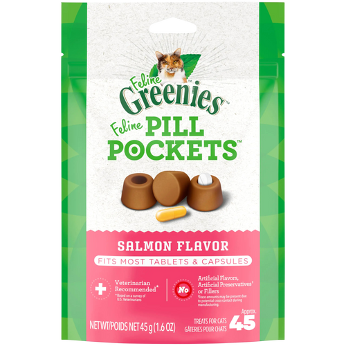 FELINE GREENIES PILL POCKETS for Cats Natural Soft Cat Treats Salmon Flavor 1.6 oz. Pack (45 Treats)